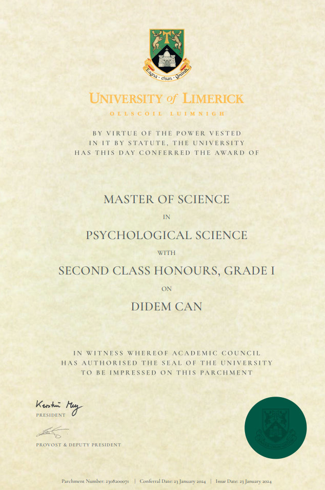 Lisans ve yüksek lisans eğitimimi İrlanda’da University of Limerick’te Psikoloji alanında tamamladım. Çocuk, ergen ve yetişkinlerle çalışıyorum ve özellikle depresyon, anksiyete, panik bozukluk, ilişki problemleri, stres yönetimi ve yaşam değişikliklerine uyum süreçlerinde danışanlara destek veriyorum.