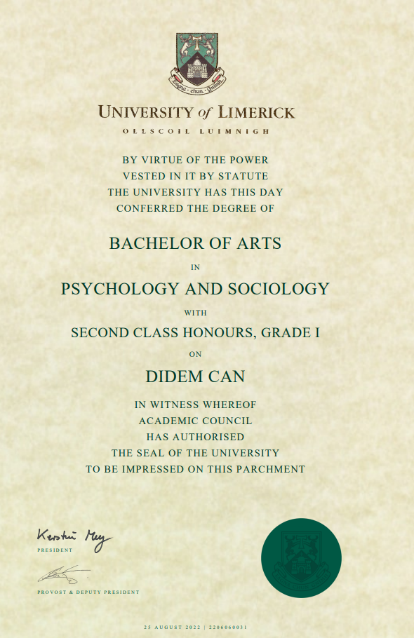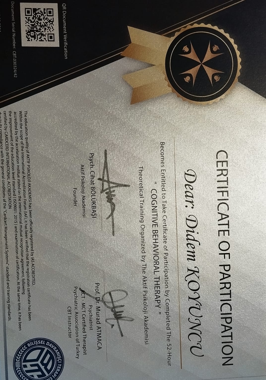 Lisans ve yüksek lisans eğitimimi İrlanda’da University of Limerick’te Psikoloji alanında tamamladım. Çocuk, ergen ve yetişkinlerle çalışıyorum ve özellikle depresyon, anksiyete, panik bozukluk, ilişki problemleri, stres yönetimi ve yaşam değişikliklerine uyum süreçlerinde danışanlara destek veriyorum.